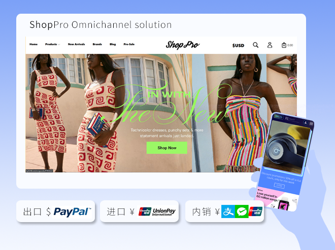 配合引流转化,自研ShopPro®跨境电商独立站全球收单。
